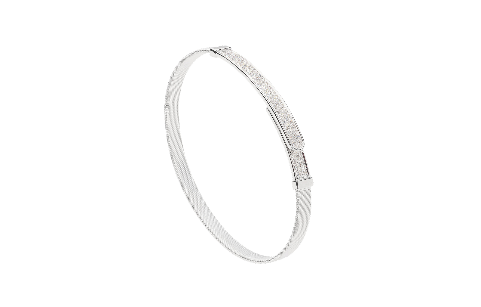 Et sofistikeret og lineært design. Armbåndet er håndlavet i 18 kt. hvidguld med brandets eksklusive coil-teknik og prydet med 0.85 ct. brillanter. Smukt individuelt og i samspil med andre armbånd i kollektionen. Takket være en integreret lås, er det nemt at tage af og på.